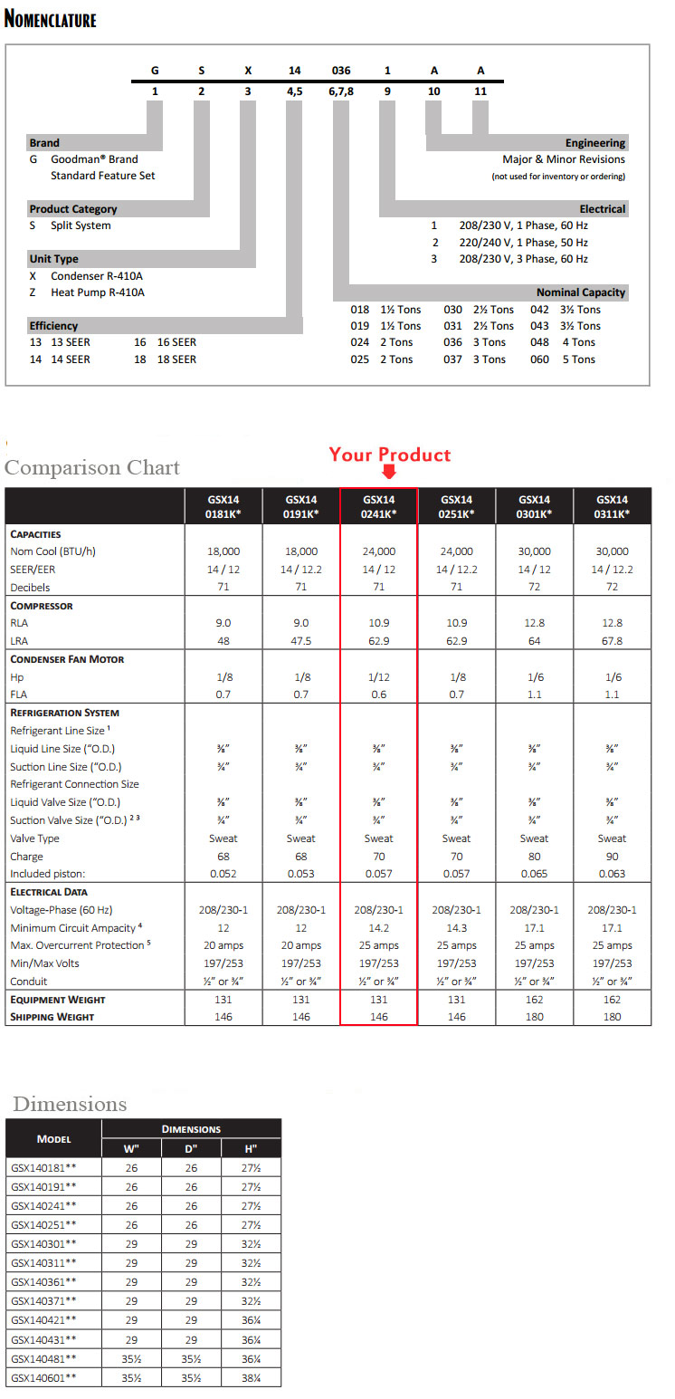 Product Name : 2 Ton Goodman GSX140241K CHPF3636B6C GMS80604BN SEER 14 Air Conditioner GAS FURNACE Split System