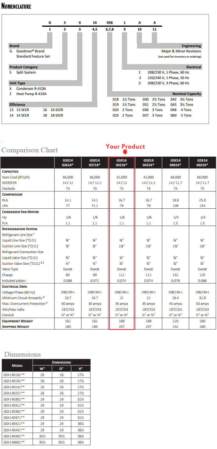 Product Name : 3.5 Ton Goodman GSX140421K CHPF4860D6D GMS81205DN SEER 14 Air Conditioner GAS FURNACE Split System