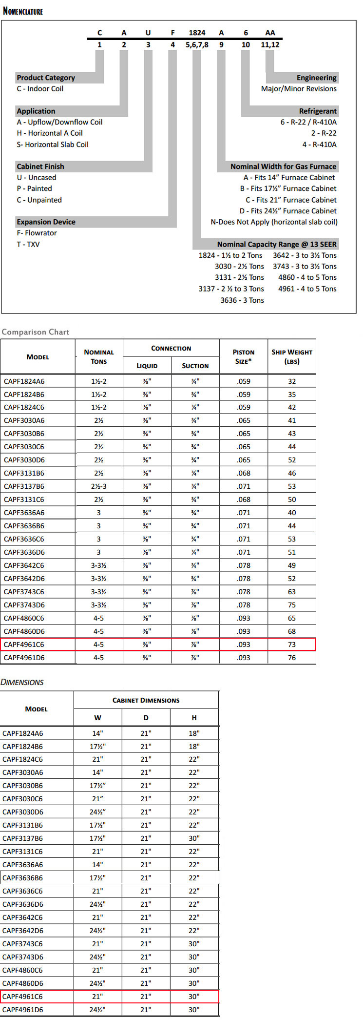 • Copper tube/enhanced aluminum fin coil