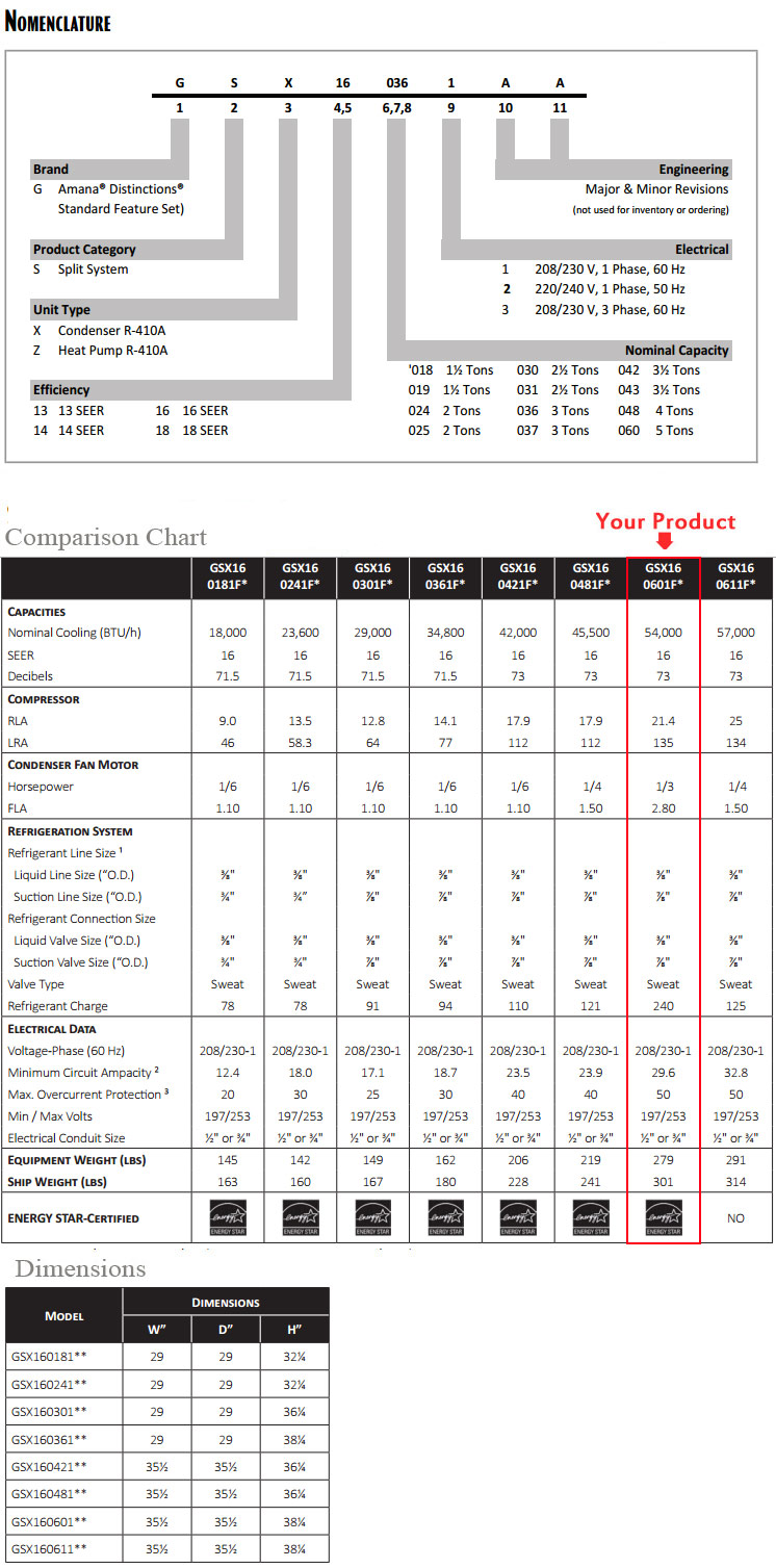 Product Name : 5 Ton Goodman GSX160601F CAPF4961D6D GME80805DNA SEER 16 Air Conditioner GAS FURNACE Split System