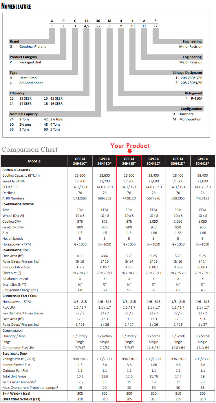 Product Name : 2 Ton Goodman GPC1424H41E SEER 14 Package Cooling Air Conditioner