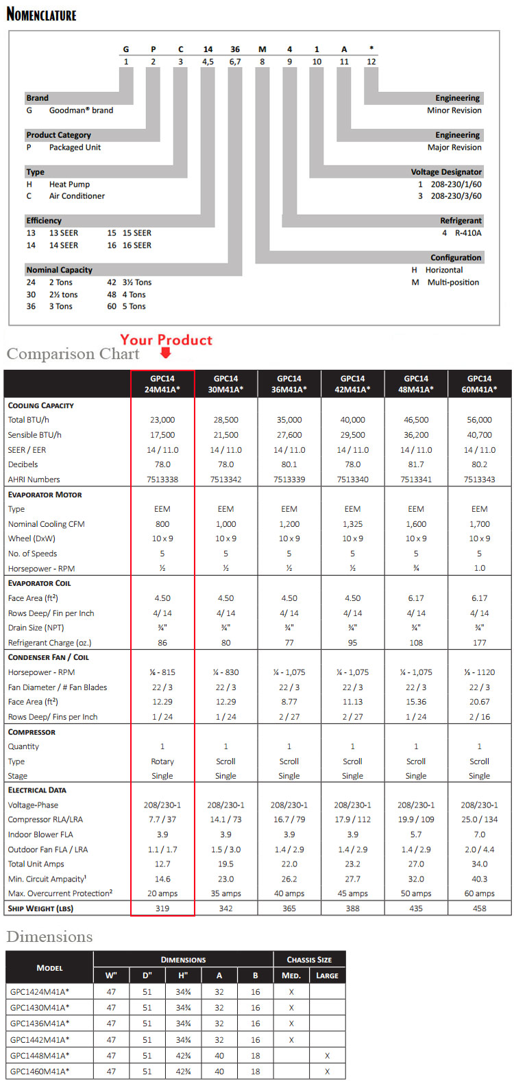 Product Name : 2 Ton Goodman GPC1424M41A SEER 14 Package Cooling Air Conditioner