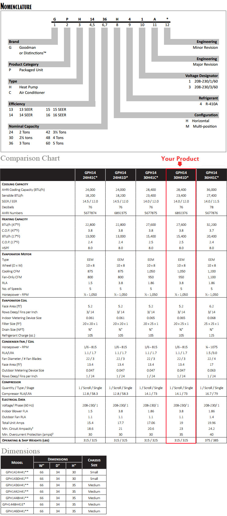 Product Name : 2.5 Ton Goodman GPH1430H41D SEER 14 Package Heat Pump Air Conditioner