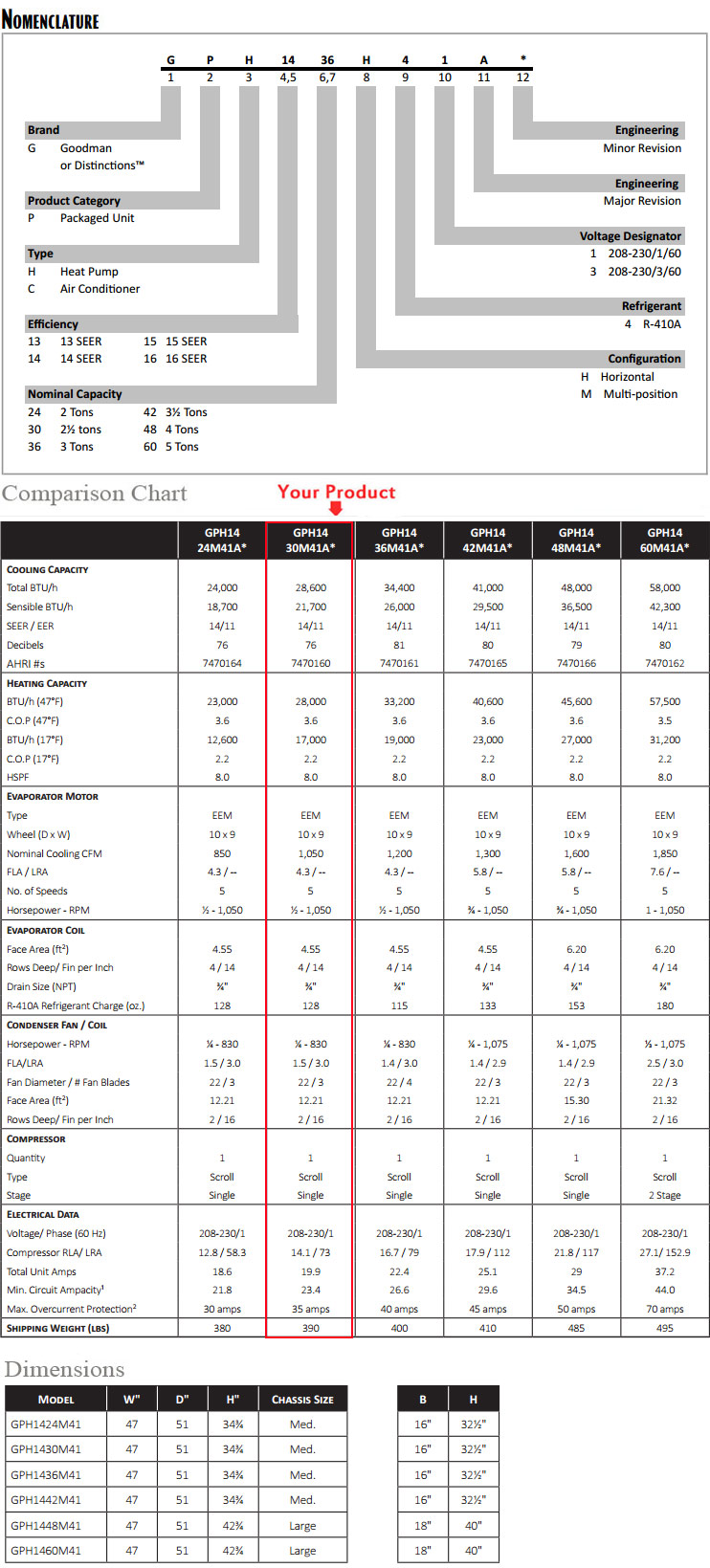 Product Name : 2.5 Ton Goodman GPH1430M41A SEER 14 Package Heat Pump Air Conditioner