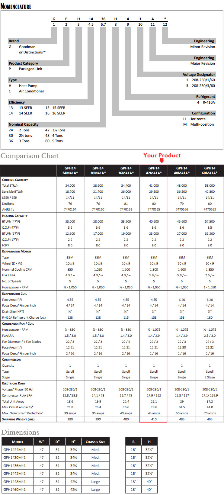Product Name : 3.5 Ton Goodman GPH1442M41A SEER 14 Package Heat Pump Air Conditioner