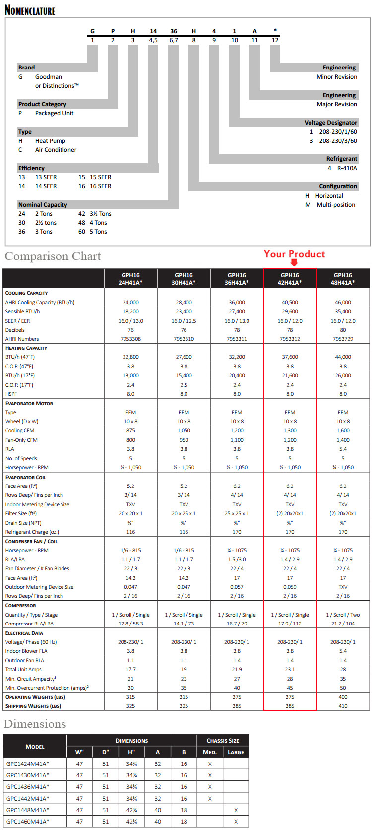 Product Name : 3.5 Ton Goodman GPH1642H41A SEER 16 Package Heat Pump Air Conditioner