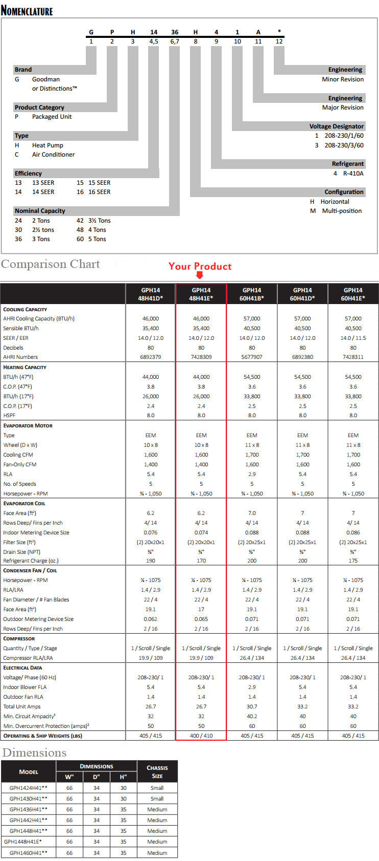 Product Name : 4 Ton Goodman GPH1448H41E SEER 14 Package Heat Pump Air Conditioner