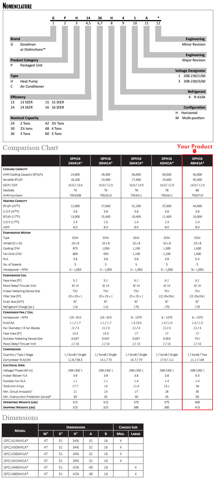 Product Name : 4 Ton Goodman GPH1648H41A SEER 16 Package Heat Pump Air Conditioner