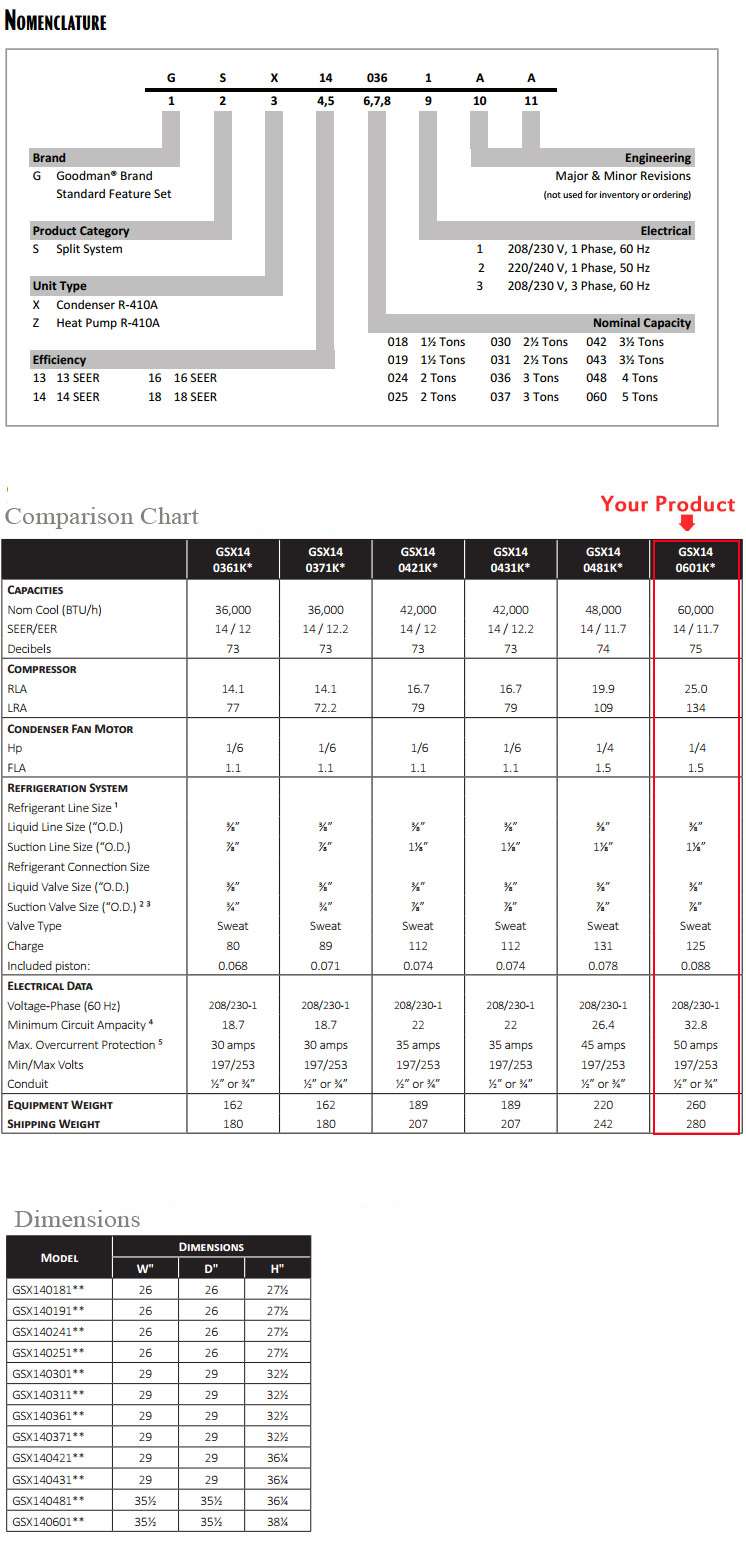 Product Name : 5 Ton Goodman GSX140601K CHPF4860D6D GMS81205DN SEER 14 Air Conditioner GAS FURNACE Split System