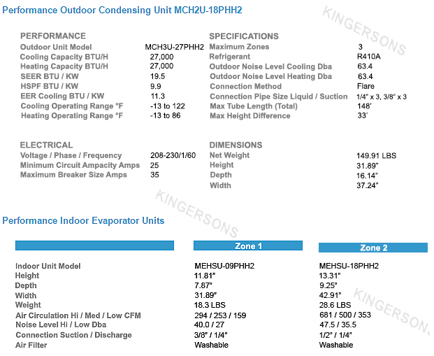 MIDEA PREMIER HYPER SERIES 27000 BTU DUAL ZONE HEAT PUMP MINI SPLIT 9K+18K Wall Indoor units