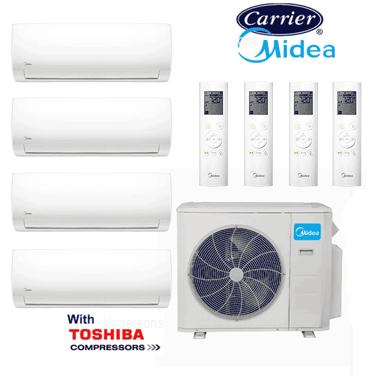 Midea Carrier Quad Zone System 36,000 Btu with 9,000 Btu x 2 & 12,000 BTU x 2 SEER21.4 Hyper Heat & Cool