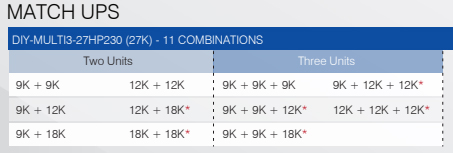 - 27K BTU 3 Zone DIY Multi-Zone Condenser The combined linear length of all line-sets shall not exceed 197 ft. The linear length of any single line-set shall not exceed 75 ft. The laterial length between the outdoor unit and any indoor unit shall not exceed 49 ft. The laterial length between the lowest indoor unit and the highest indoor unit shall not exceed 33 ft.