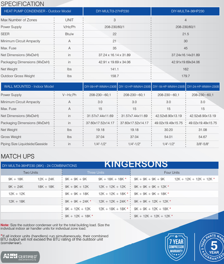 ** Comes with Pre-Charged 25 ft Install kit for Each Indoor unit.  **