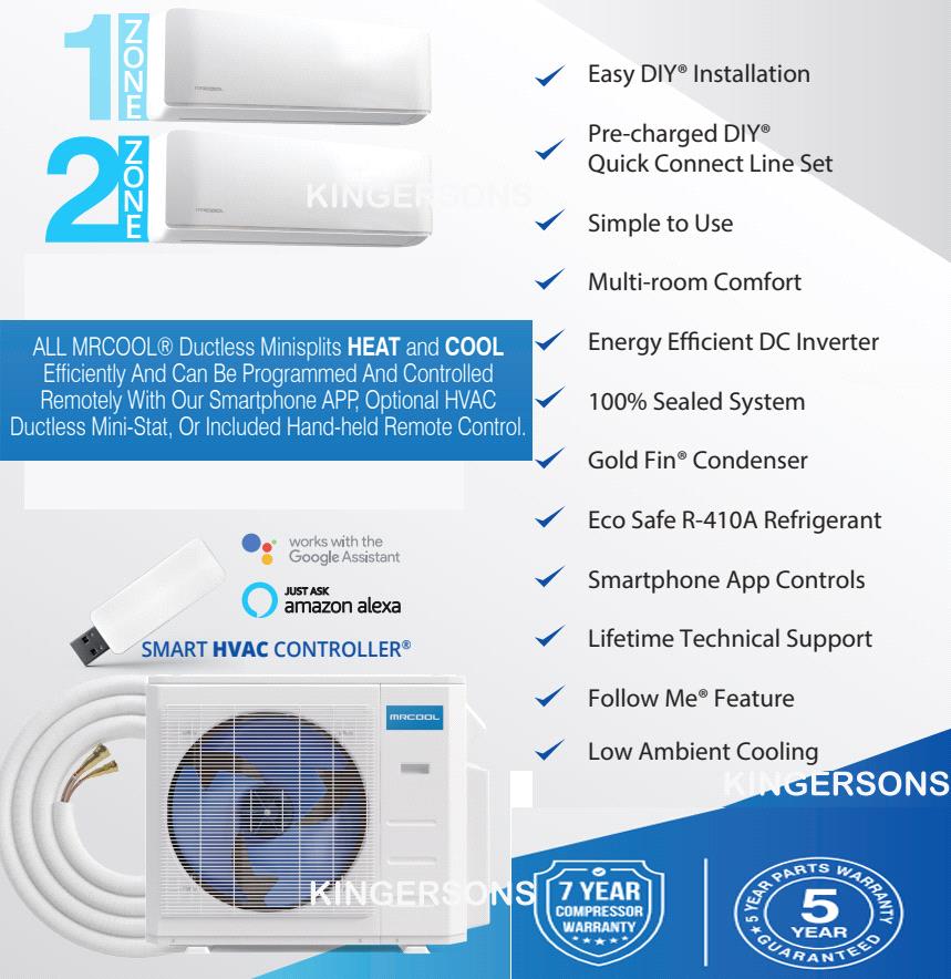 Product Name : MRCOOL DIY 21,000 BTU Ductless Heat Pump 2 Zone Wall Mounted 12,000+9,000 with 25FT Install Kit 230-Volt/60Hz SEER 22