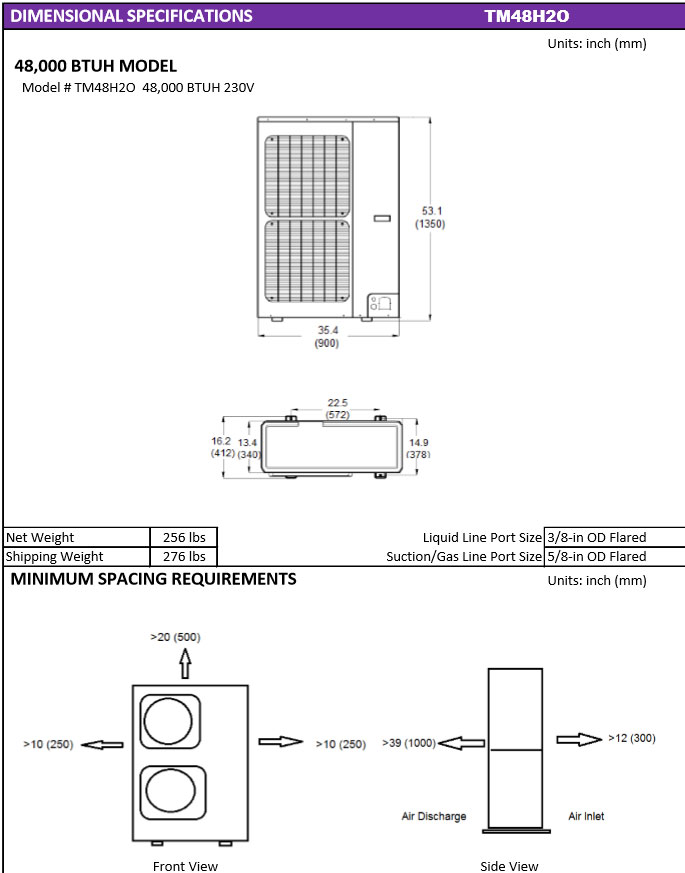 Product Name: TOSOT TM48H2O OUTDOOR CONDENSER UNIT 48,000 BTU, 230/208V, UP TO EIGHT INDOOR UNITS, SEER 16.0DC INVERTER