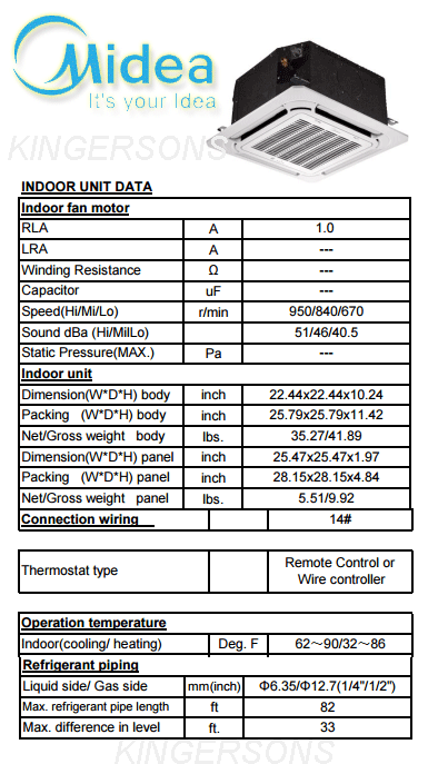 12000 Btu Midea Ceiling Mount Unit Only MEHU12AVC2