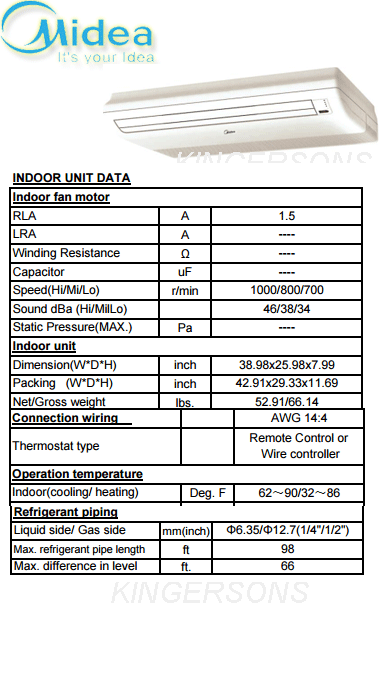 18000 Btu Midea Floor Mount Indoor Unit ONLY MEHU18AVF2