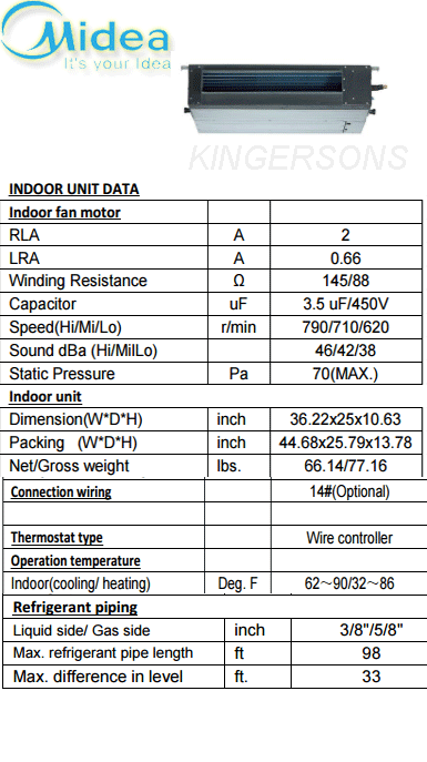 24000 Btu Midea Concealed Duct MEHU24AVD2 Indoor unit only