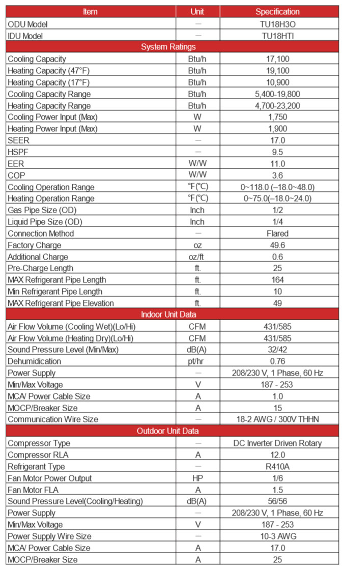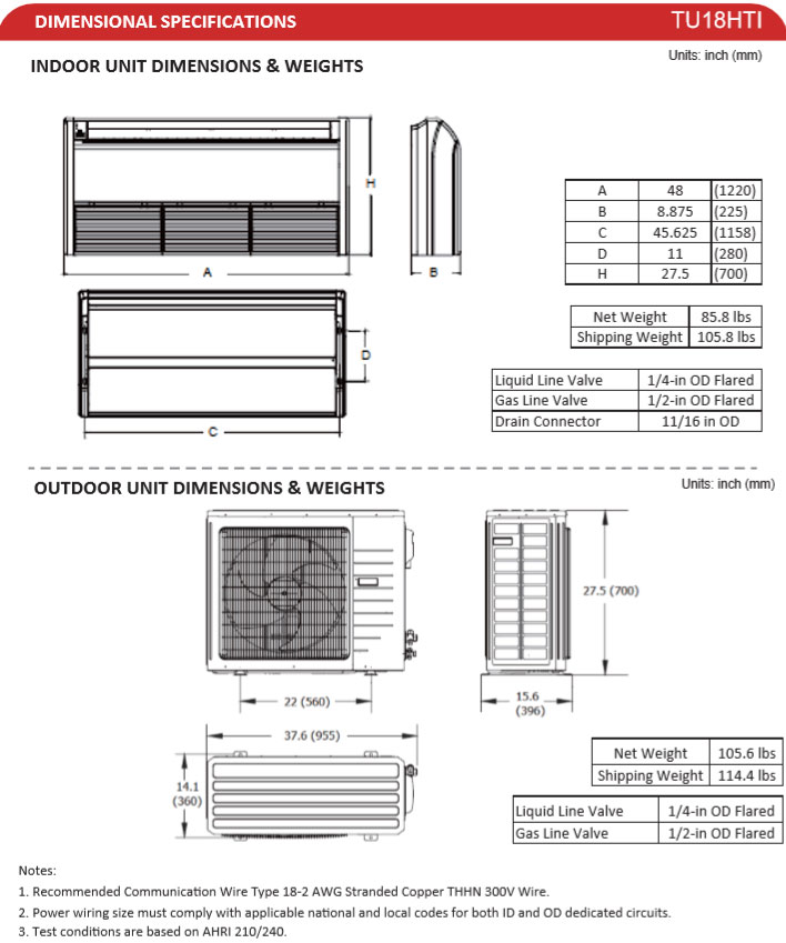 Product Name : 18000 BtuH TOSOT 230V SEER 17 Floor~Ceiling Cool & Heat Pump Ductless System 1.5 Ton