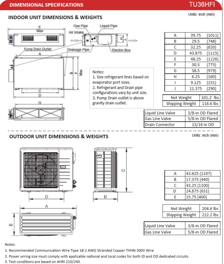 Product Name: 36000 BtuH TOSOT 230V SEER 16 Duct Cool & Heat Pump Ductless System 3 Ton