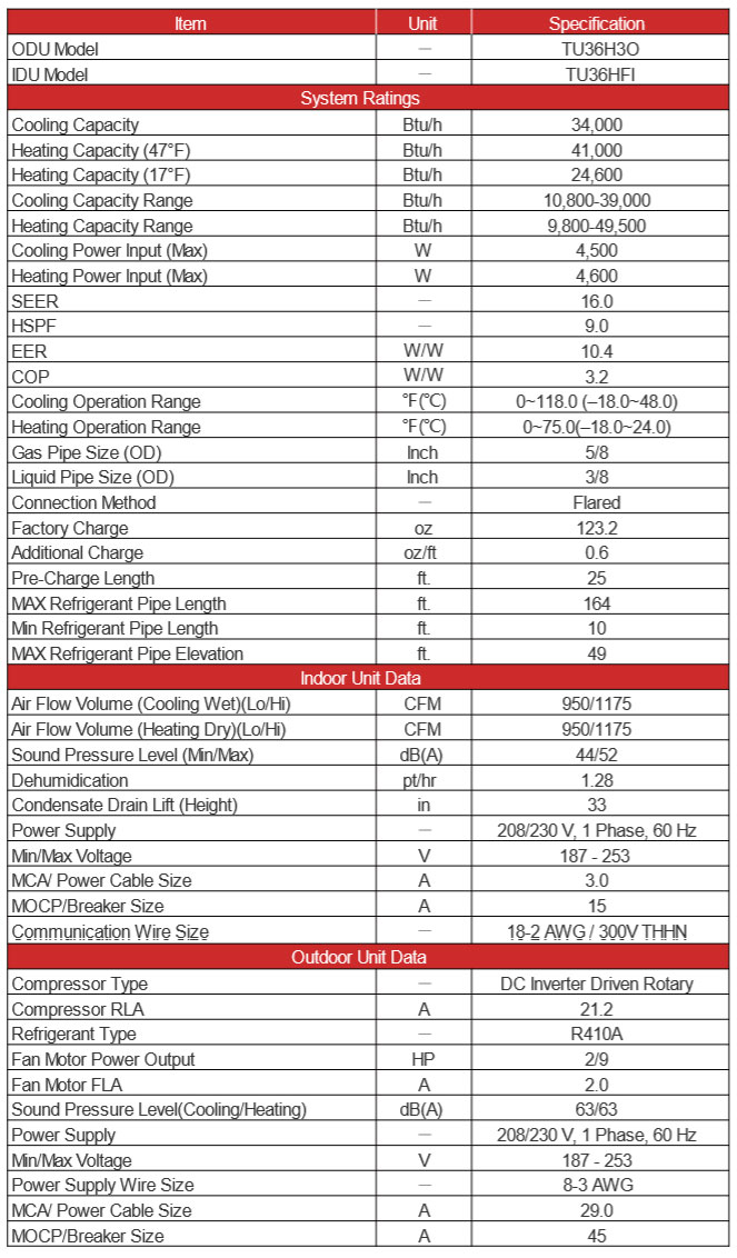 Product Name : 36000 BtuH TOSOT 230V SEER 16 Duct Cool & Heat Pump Ductless System 3 Ton
