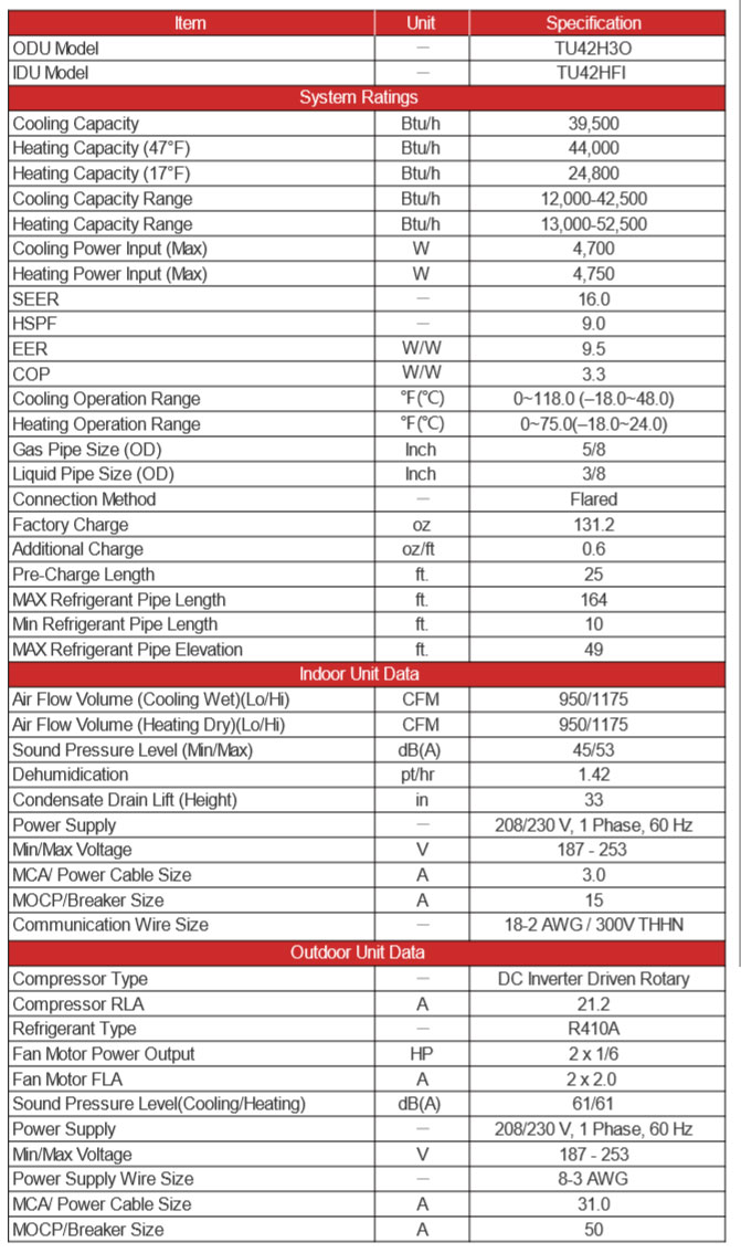 Product Name : 42000 BtuH TOSOT 230V SEER 16 Duct Cool & Heat Pump Ductless System 3.5 Ton