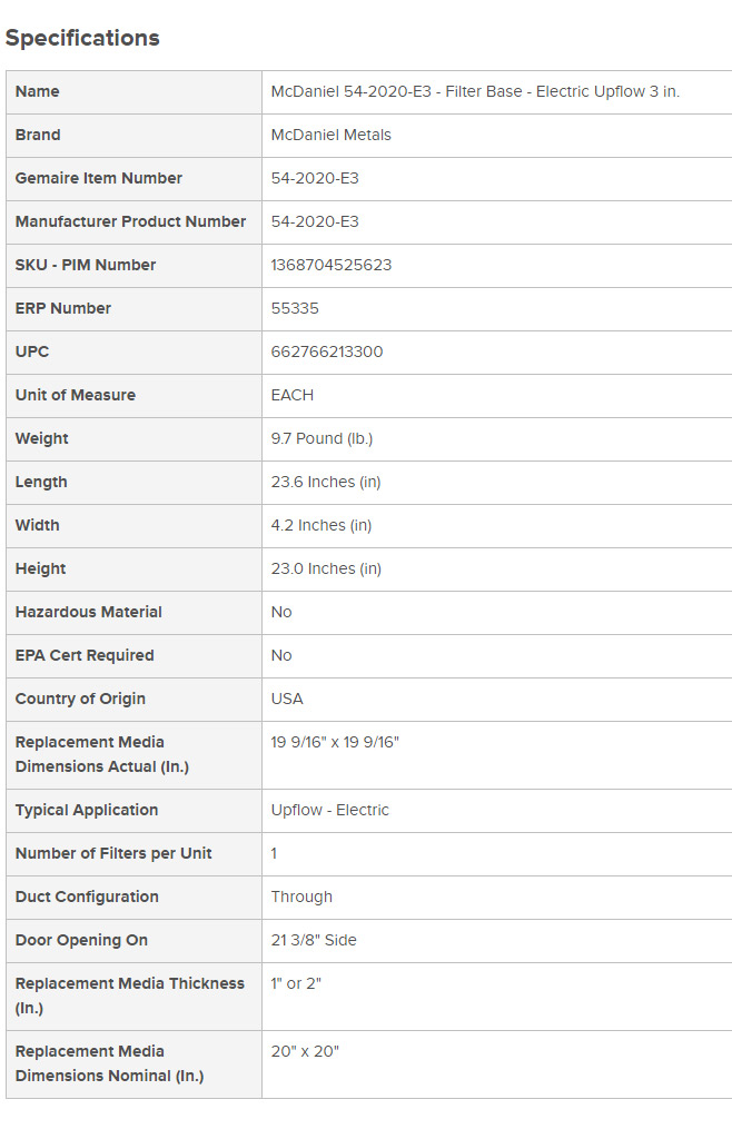 Product Name : McDaniel 54-2020-E3 - Filter Base - Electric Upflow 3 in.