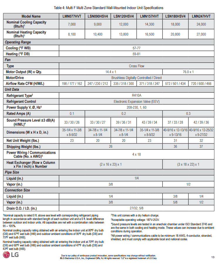 Now once you have decided how many units you need, it is time to see what features you want. Low Ambience Feature For example if you live in New York where the temperature goes below 15 deg quiet a few times in a year and if you need this AC unit to do the heating job as well in the winter time, in that case DO NOT buy the standard SEER 13 without Low Ambience. You need the unit that has Low Ambience operation as they can produce heat in temperature as low as minus 4 deg or zero deg depending upon which unit you end up buying. YMGI/LG/Friedrich/Haier for example have units that produce heat in temperature as low as zero deg.