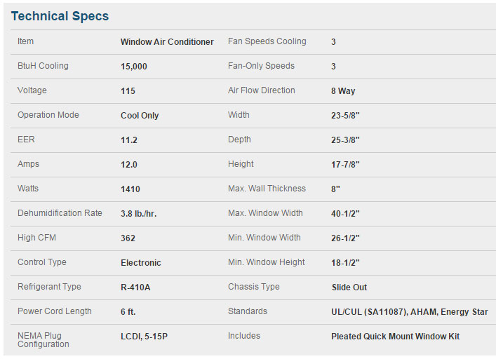 Product Name : Frigidaire FFRE15331 Window Air Conditioners 15000 BTU 115V