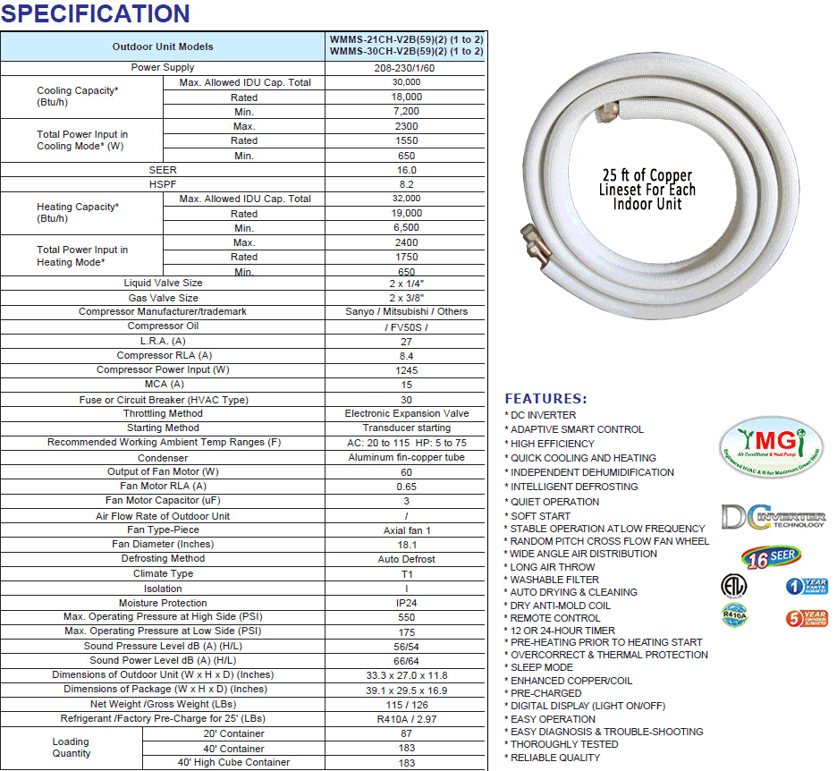Benefits: YMGI Ductless min-split Heat Pump systems use Advanced Inverter Technology to constantly adjust output to maximize comfort and minimize energy costs.