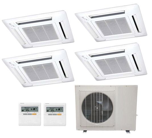 Fujitsu AOU48RLXFZ AUU9RLF (TWO) AUU18RLF (TWO) Quad Zone Ceiling Cassette 54000 BTU
