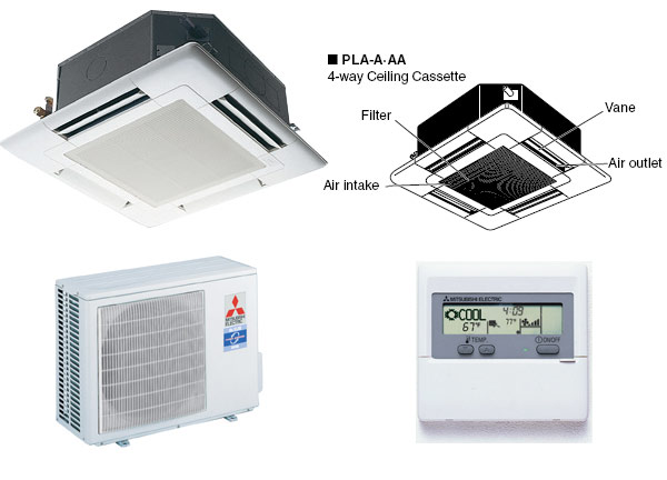 Mitsubishi MXZ8C48NA SLZKA09NAR1 (TWO) SLZKA12NAR1 (TWO) Quad Zone Ceiling Recessed