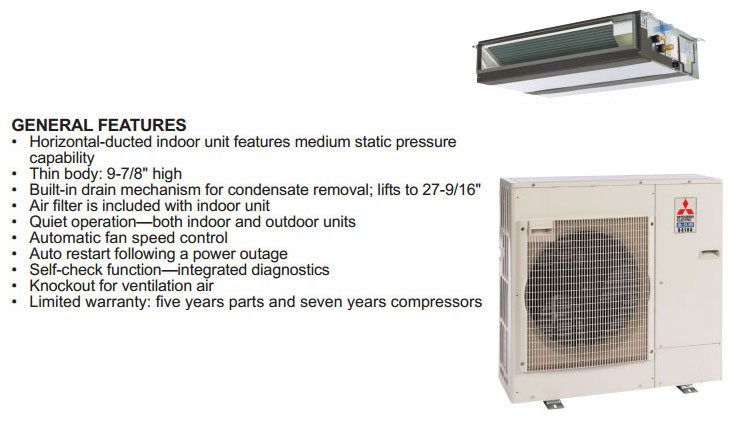 Mitsubishi 12,000 BTU 21.1 SEER Ducted Mini Split Heat Pump System