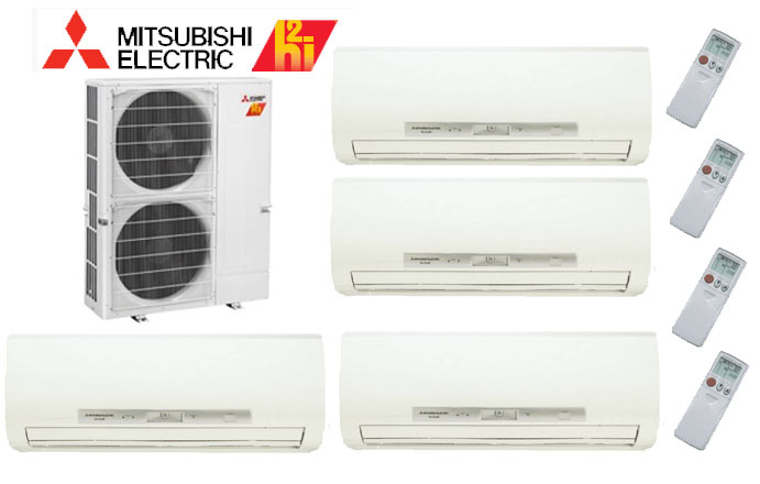Mitsubishi MXZ5C42NAHZ MSZFH09NA x2 MSZFH12NA x2 Quad Zone Hyper Heat Ductless Split System AC HEAT PUMP