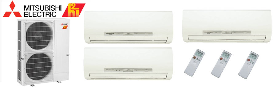 Mitsubishi MXZ5C42NAHZ MSZFH12NA x 2 MSZFH18NA2 Tri Zone Hyper Heat Ductless Split System