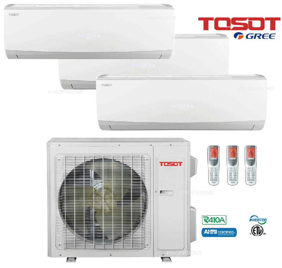 TOSOT TRI ZONE SPLIT AIR CONDITIONER 36,000 BTU WITH 9,000 12,000 18,000 BTU SEER 21