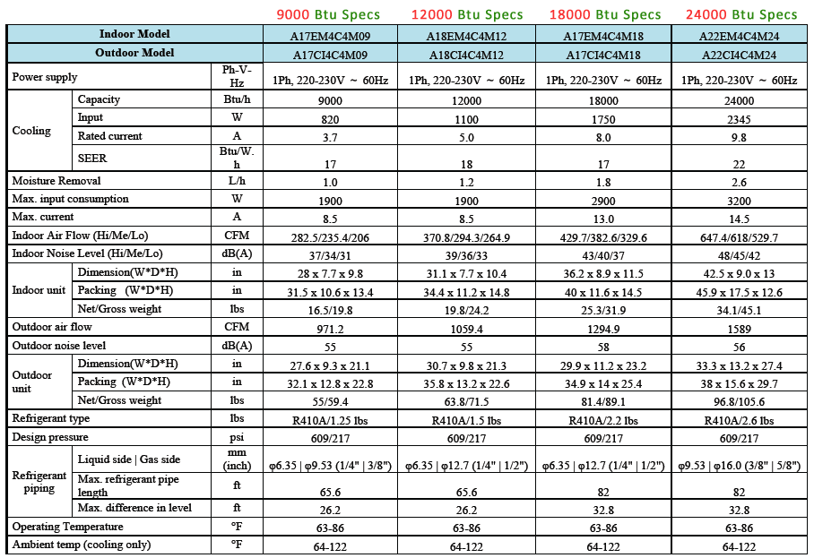 · 5-year on compressor and 1-year other parts.