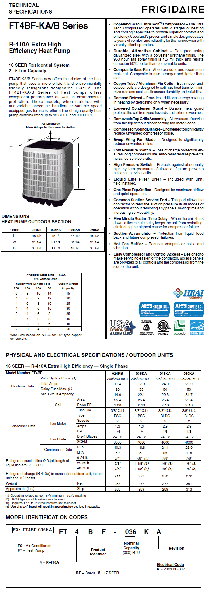OUTDOOR UNIT SPEC SHEET GUIDE Click Here (a pdf file will open in new window)