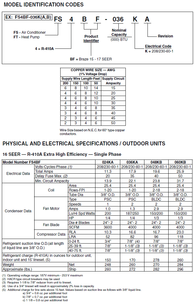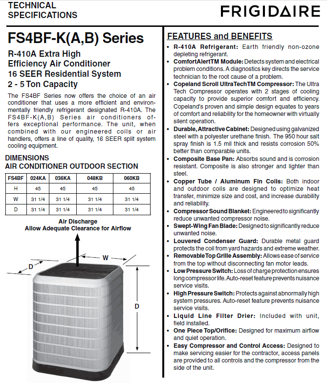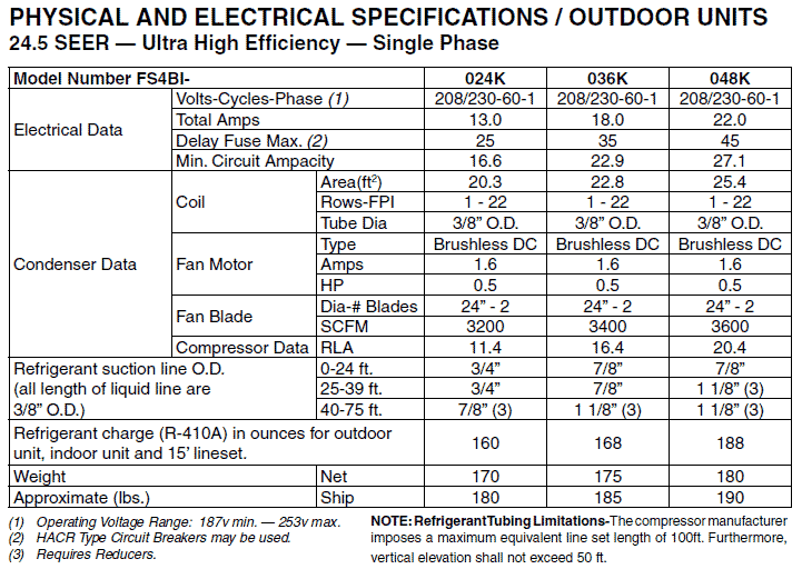 OUTDOOR UNIT SPEC SHEET GUIDE Click Here (a pdf file will open in new window)