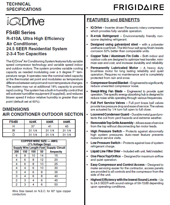 BROCHURE FRIGIDAIRE Click Here (a pdf file will open in new window)