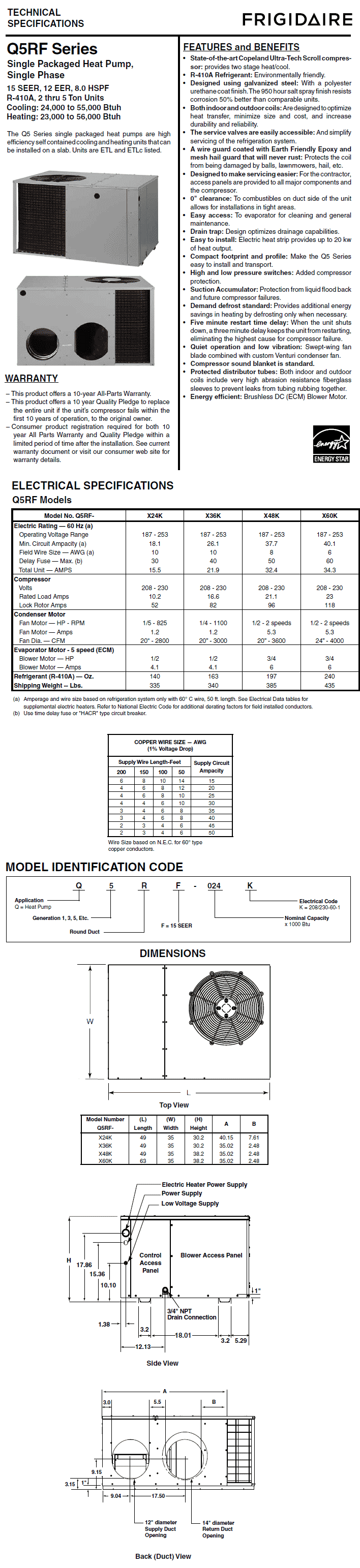 FRIGIDAIRE HORIZONTAL PACKAGED AIR CONDITIONER FEATURES and BENEFITS
