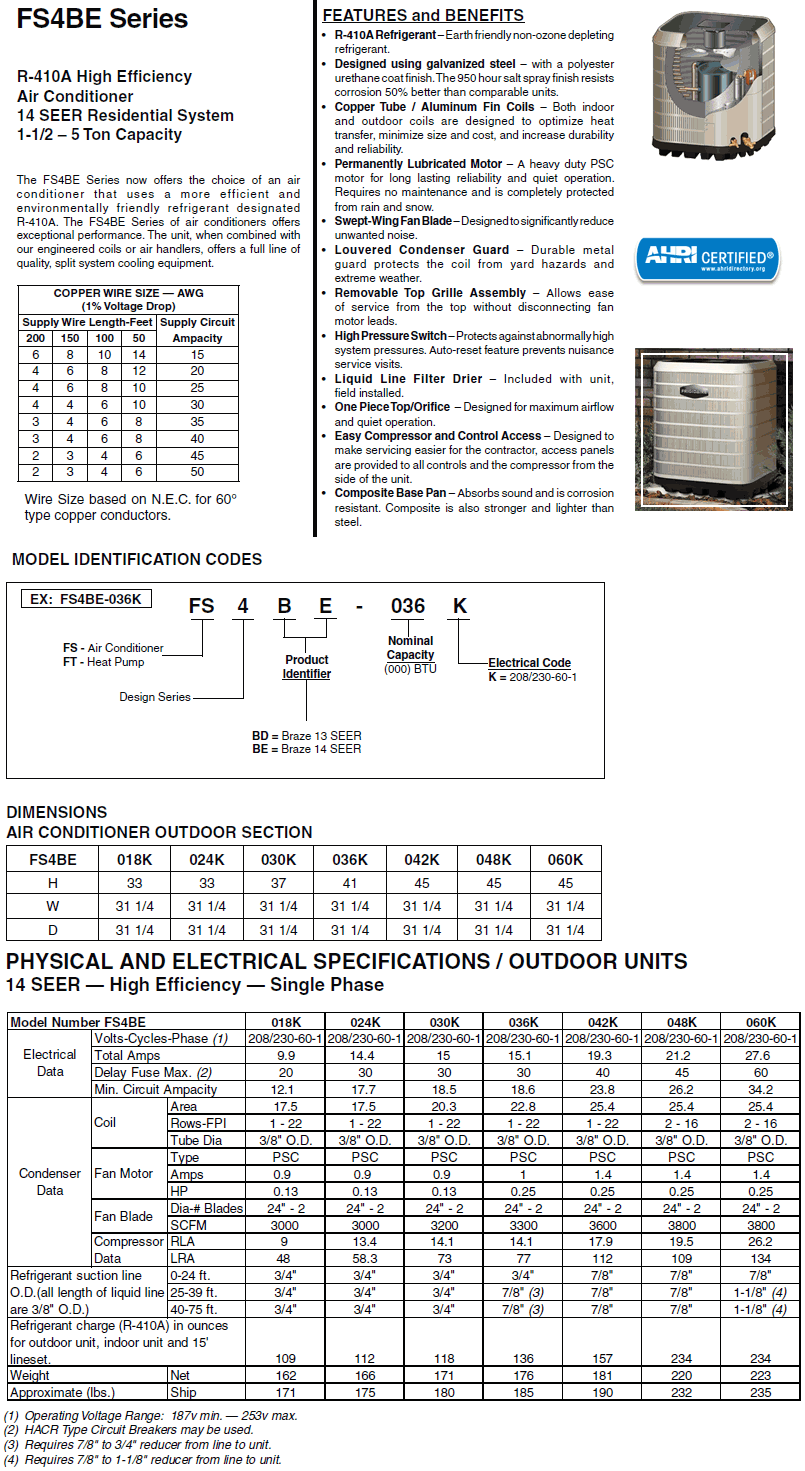 OUTDOOR UNIT SPEC SHEET GUIDE Click Here (a pdf file will open in new window)