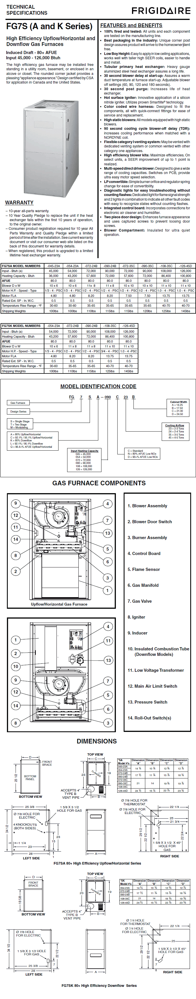 GAS FURNACE UNIT SPECIFICATION GUIDE Click Here (