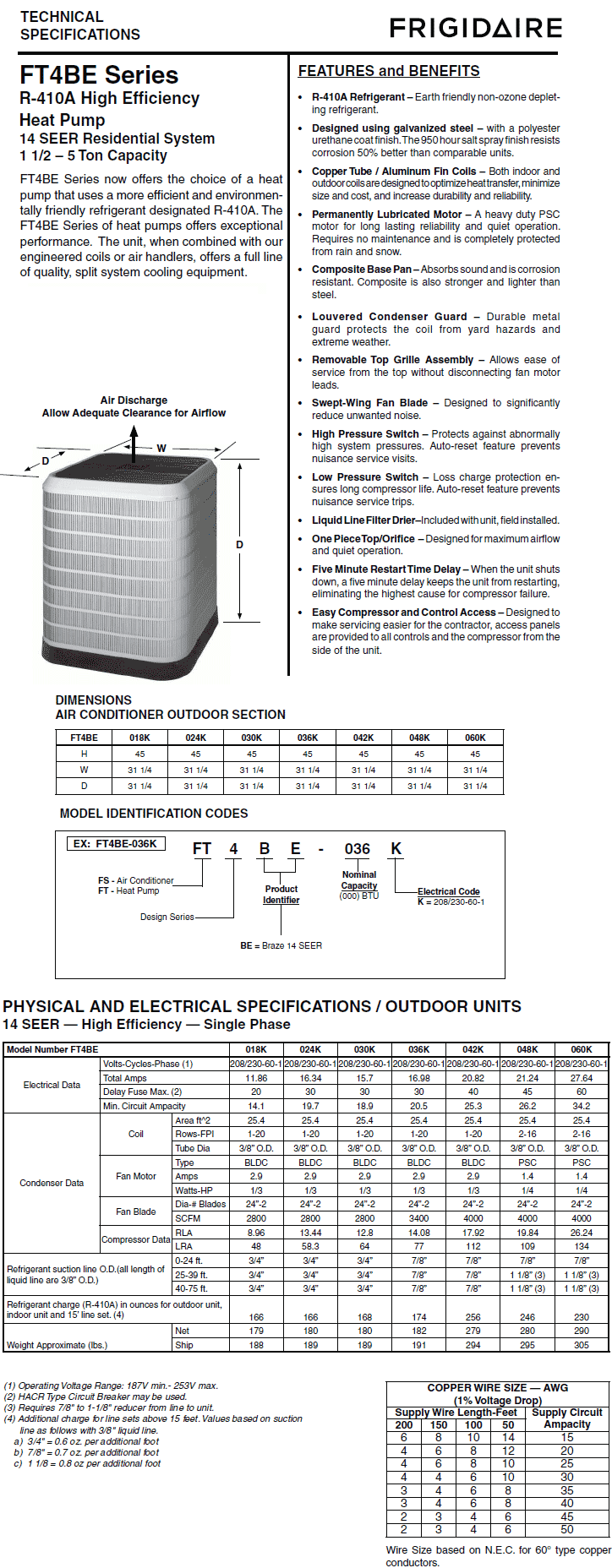 OUTDOOR UNIT SPEC SHEET GUIDE Click Here (a pdf file will open in new window)