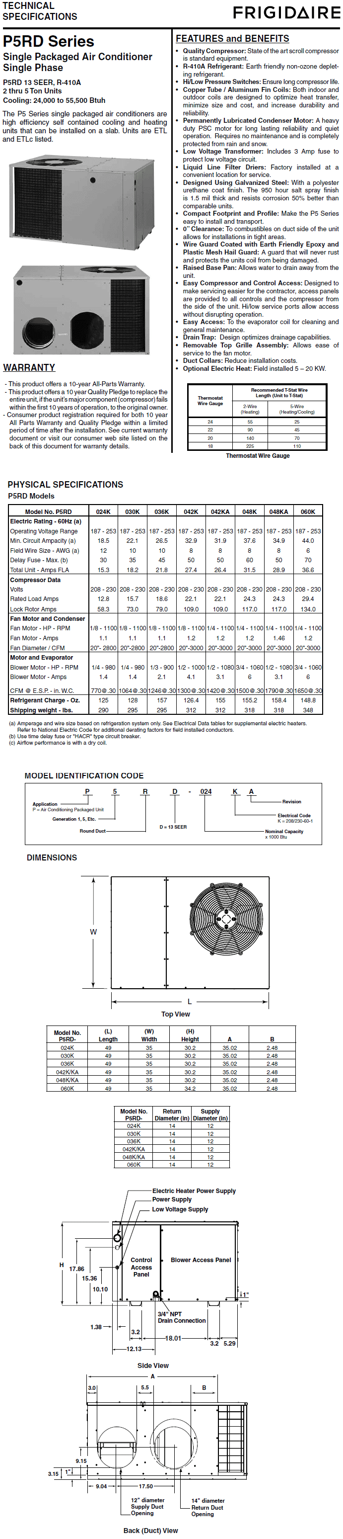 HORIZONTAL PACKAGED SYSTEM FRIGIDAIRE Click Here (a pdf file will open in new window)