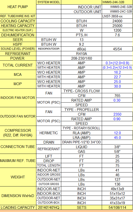 Model # WMMS-24K-32B - R410A REFRIGERANT