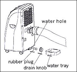 STEP 2 : Unscrew the drain knob & pull rubber plug from the drain hole, the condensed water will drain out automatically.