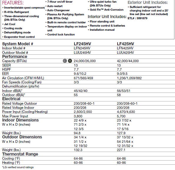 • Warranty From LG - Only applies to units installed by licesensed HVAC Or Air Conditioning company.