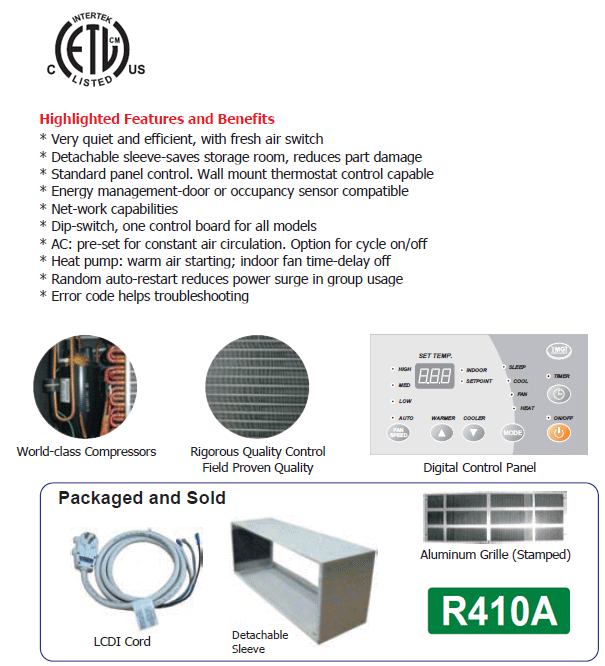 PTAC PTHP units. Ge package terminal air conditioner system.
